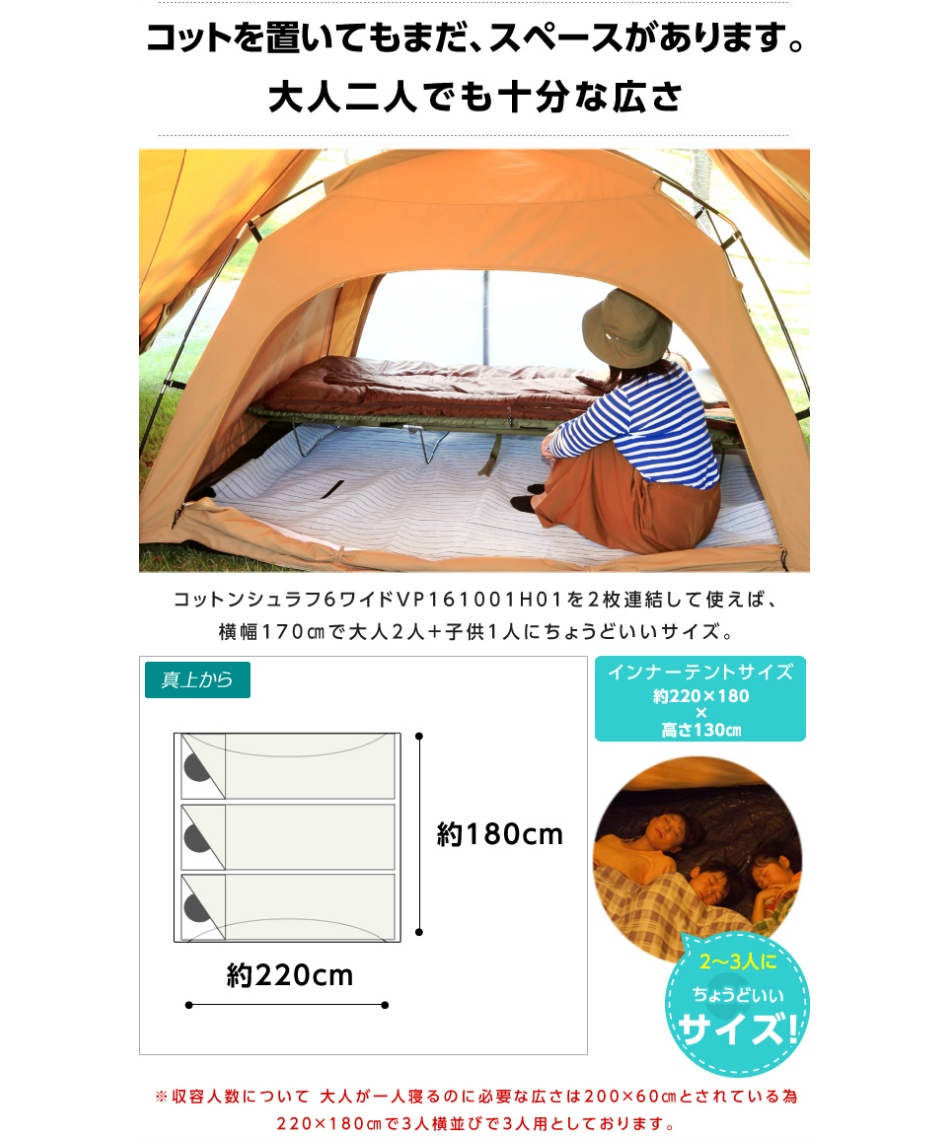 夏場は熱苦しくなる可能性があるので、僕だけ外でコットで寝るってことで。
